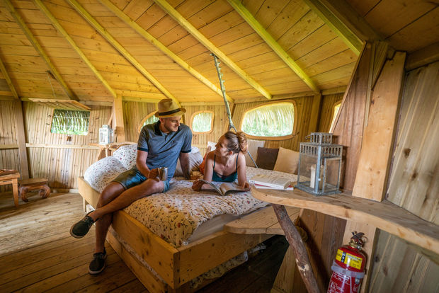 Jusqu'à 4 personnes dans un tonneau cosy et confortable, jusqu'à 9 dans une cabane perchée dans les arbres, jusqu'à 7 dans un Cottage'hutte authentique, ou encore jusqu'à 7 dans une cabane sur l'eau… Trouvez la formule qu'il vous faut !